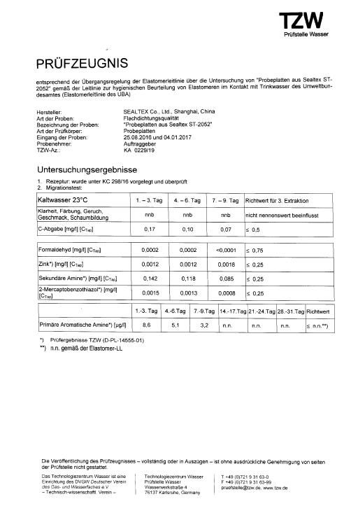 ST-2052無(wú)石棉墊片獲得飲用水認(rèn)證KTW,W270