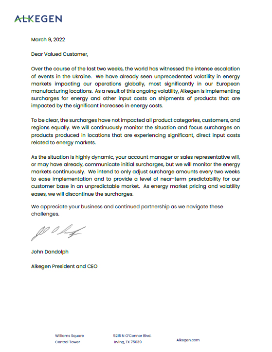 關于美國InterFace材料能源費上調7.1% 的緊急通知